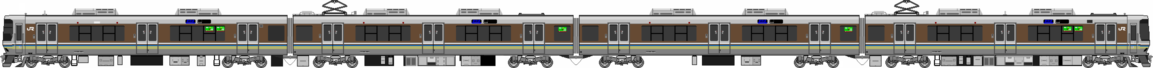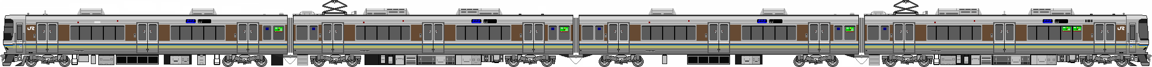 223-2000系V64編成。製造は川崎重工、インバータは三菱、クーラーも三菱です。