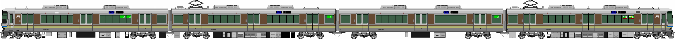 223-5500系F1編成。製造は川崎重工、インバータは三菱、クーラーは東芝です。