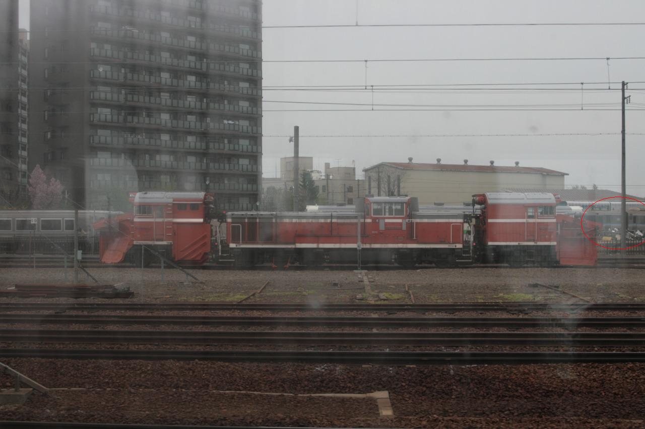 改造前のNE-105編成ですけど昨年の北海道旅行で写真を撮ってないかと探してみたんですが(見た事は確かあったと思っていたので)、辛うじて写ってるのが1枚あったので載せておきます。