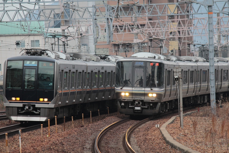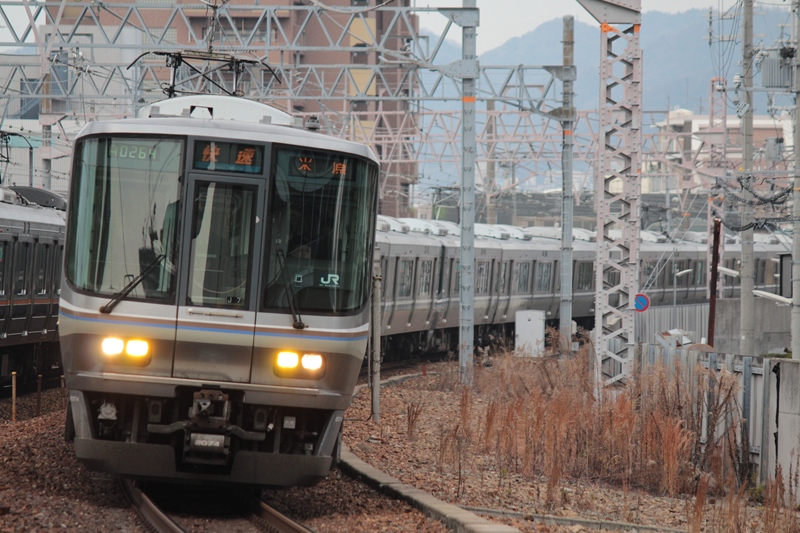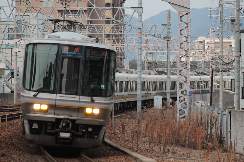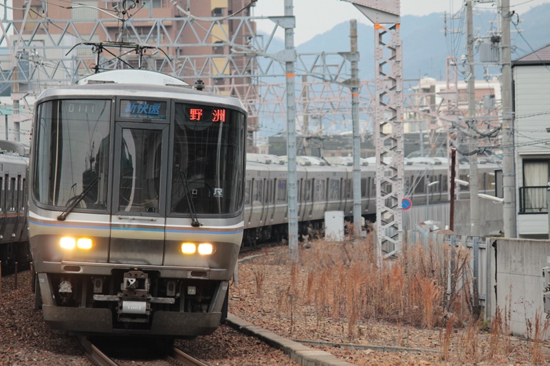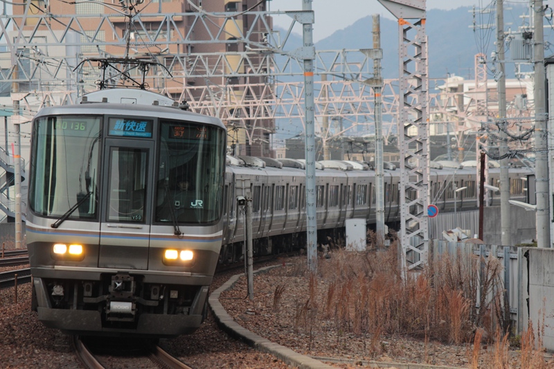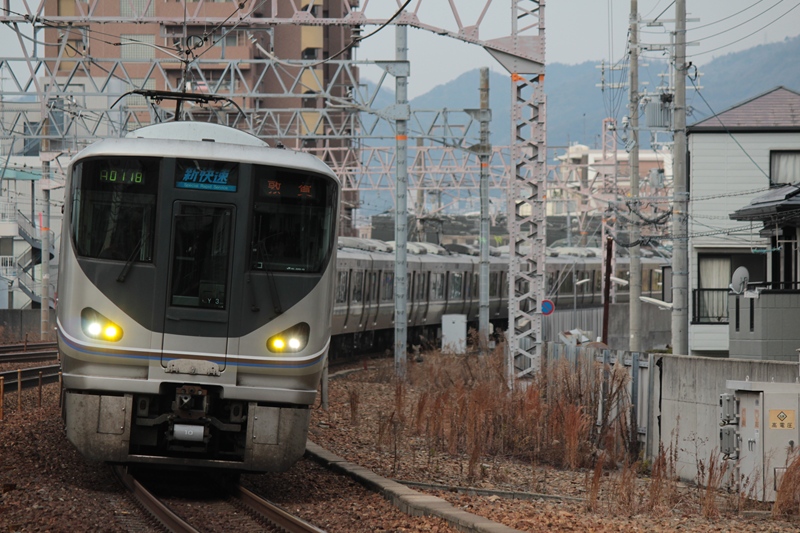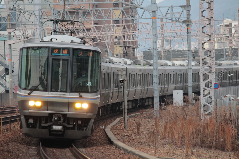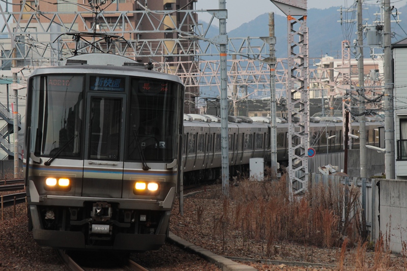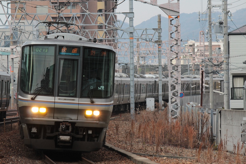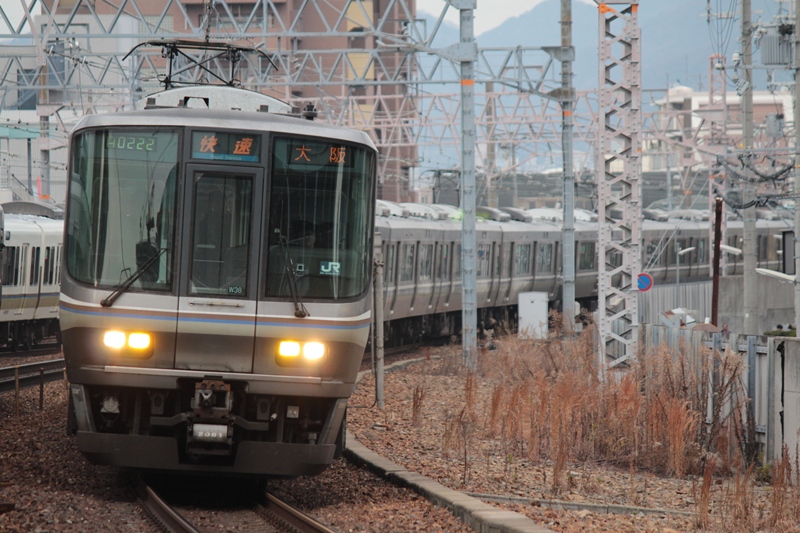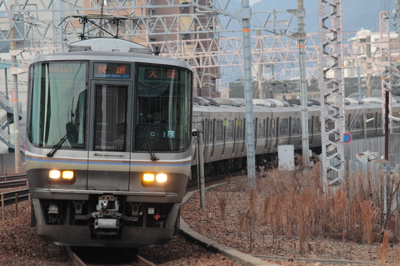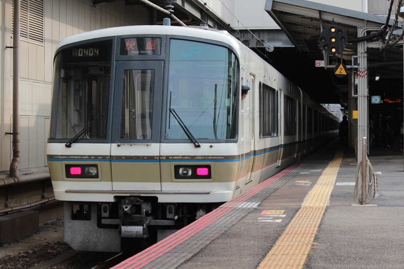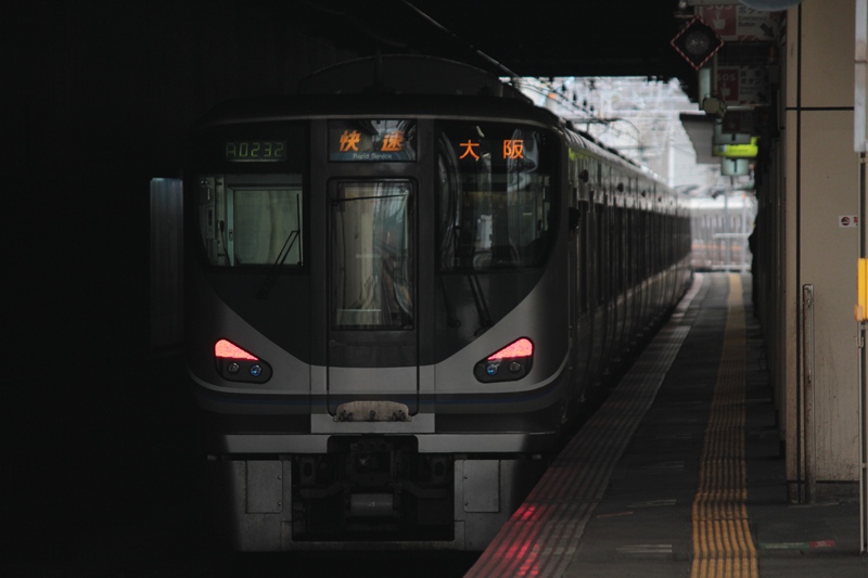 結局225系が撮れなかったので今日の大阪始発の新快速がY編成をつないでいたことを思い出して折り返しを狙います。この外側線快速の次の新快速です。