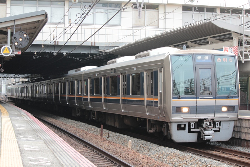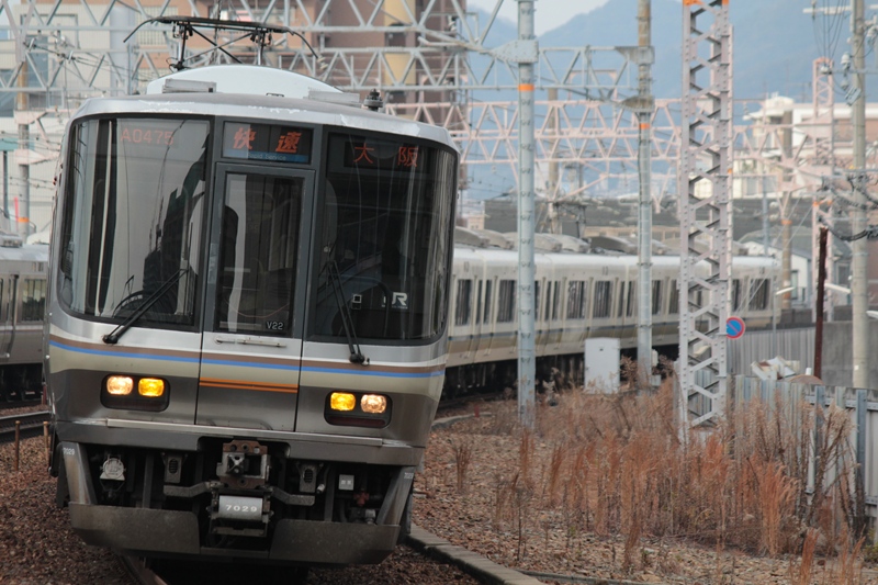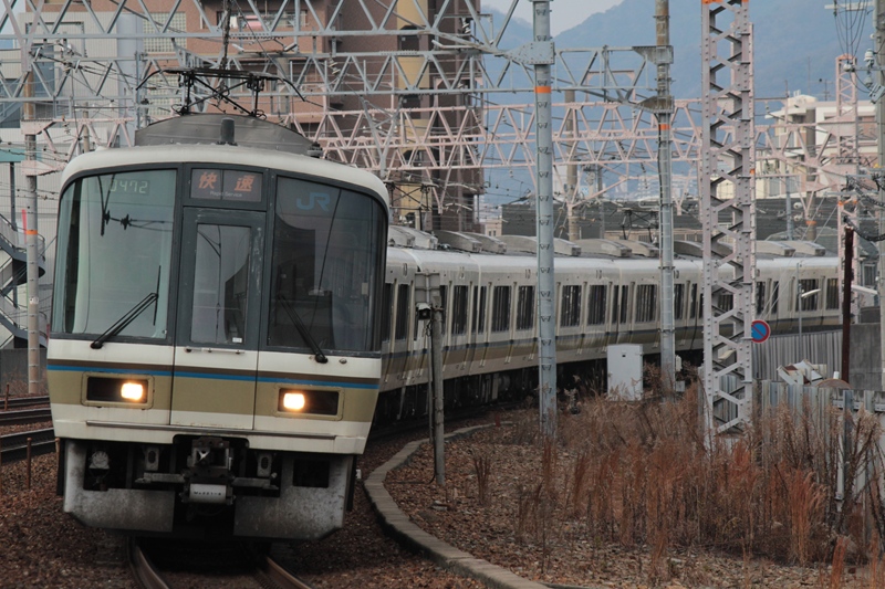 8連先頭新快速の後に221(223-6000)の外側快速3本が続けてやってきます。