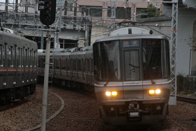 最後は本線普通/須磨行きと221系本線8連快速を並べて撤収。D28編成です。