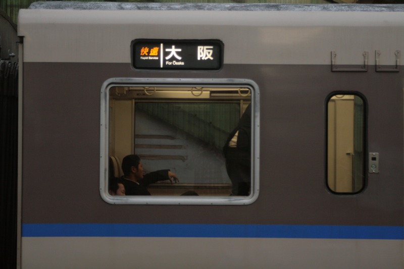 谷川へ到着。快速/大阪行きのS-3編成。シャッター速度がとれずにブレました・・・。