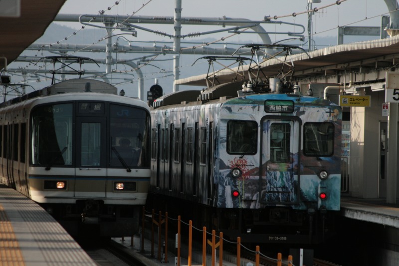 このホーム、加古川線を狙うにはもってこいなんですよね・・・。M5編成。