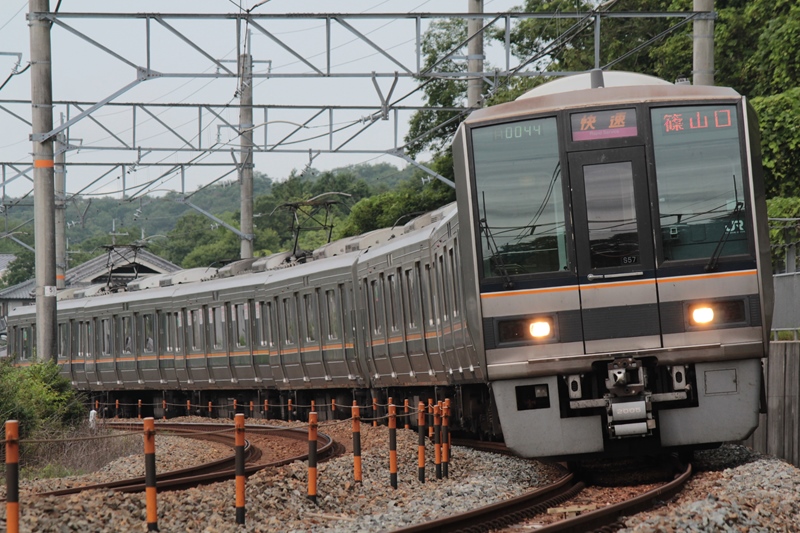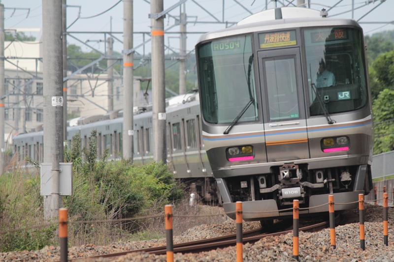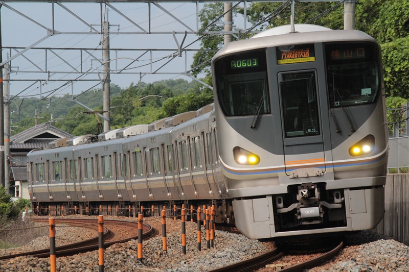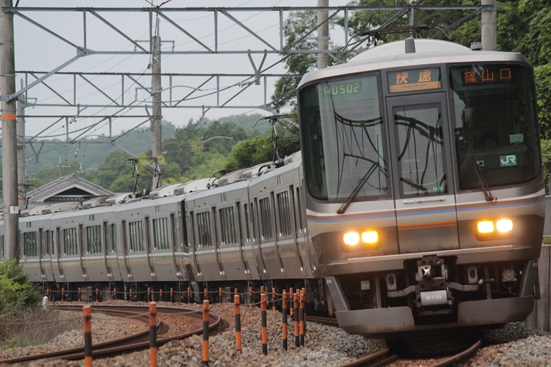 日が差すとここは逆光に…丹波路快速/大阪行き。