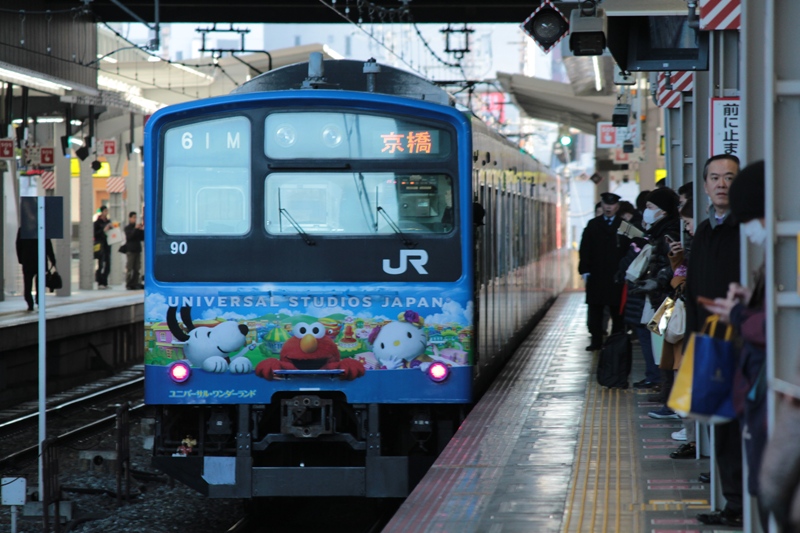 ユニバーサルスタジオラッピングの201系が走っていました。