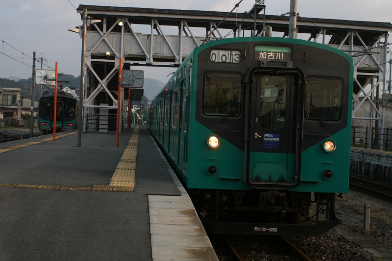 谷川へ到着。早速やってきた快速/大阪行き(いつも乗るやつですね)をミス。