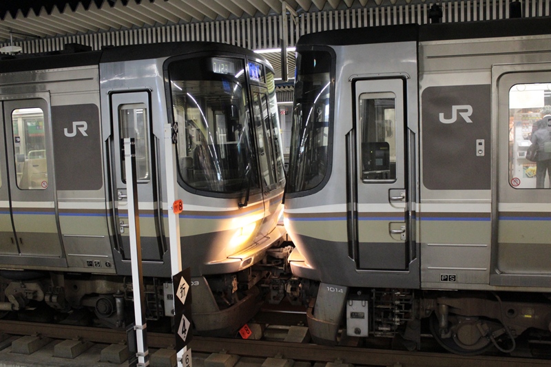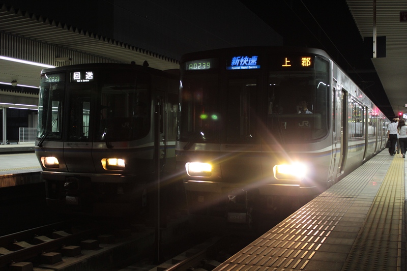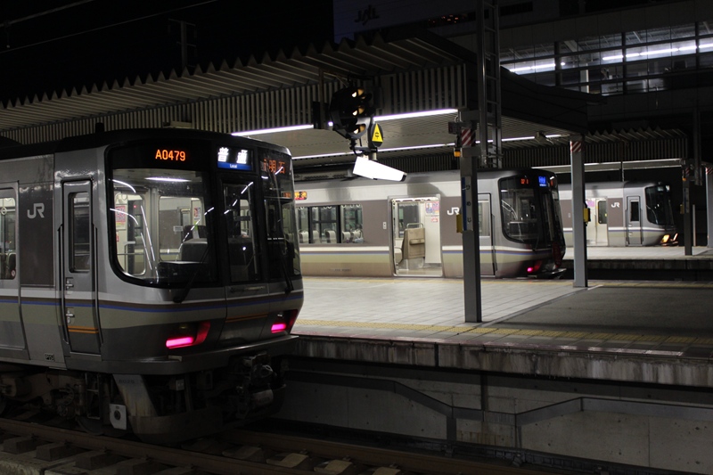 223系3本並び!22時過ぎだというのに真ん中の新快速は野洲まで走るようです。