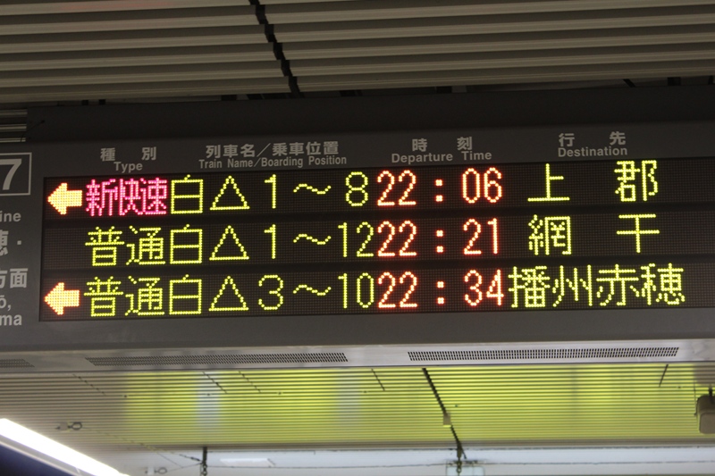 側面表示。ここは姫路駅なので「姫路方面」がありません。