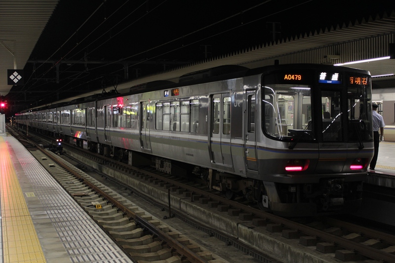 調べてみると野洲行きの最終列車のようで姫路を22:56に出て野洲に着くのは1時ちょうど・・・ご苦労様です。