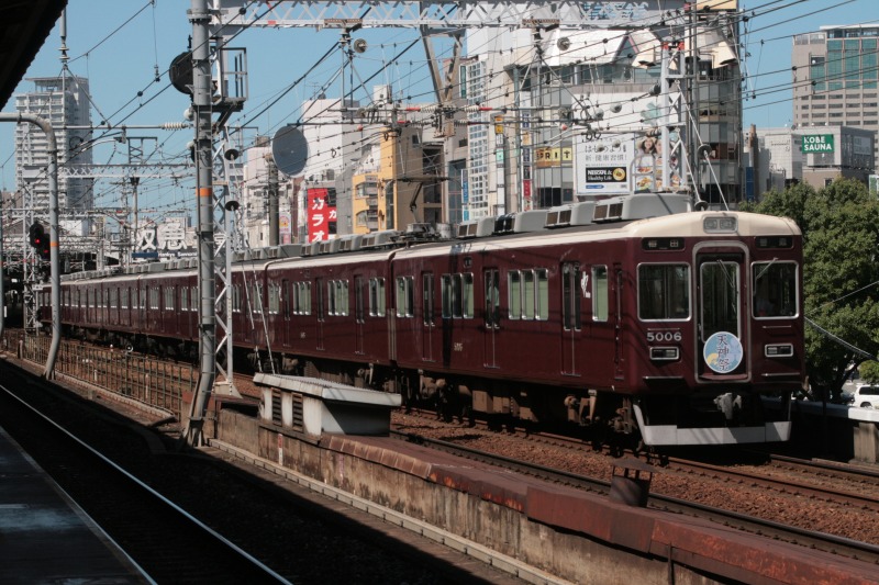 三ノ宮駅で阪急。「天神祭」のHMを掲出した阪急5000系5006F。
