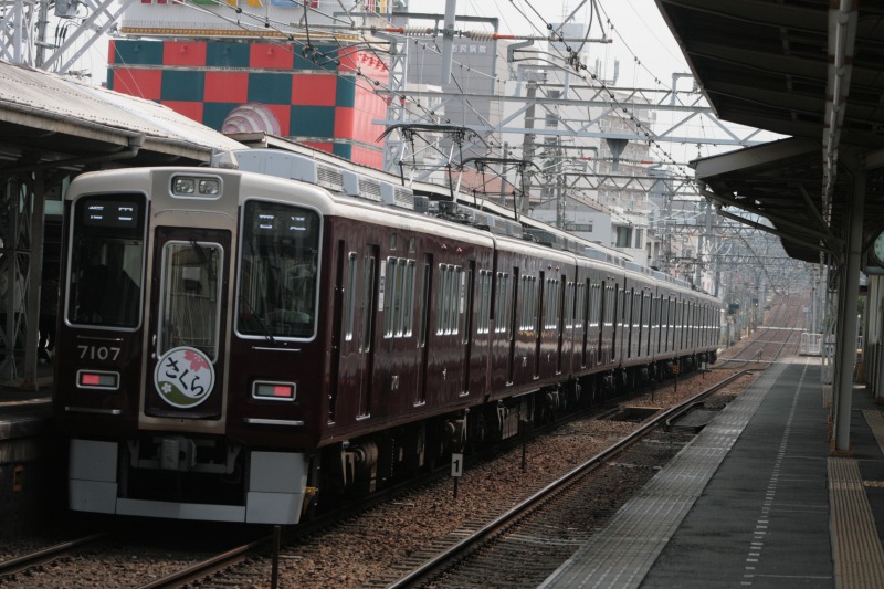 結構飛ばしてますね。特急/梅田行き。7000F。