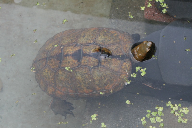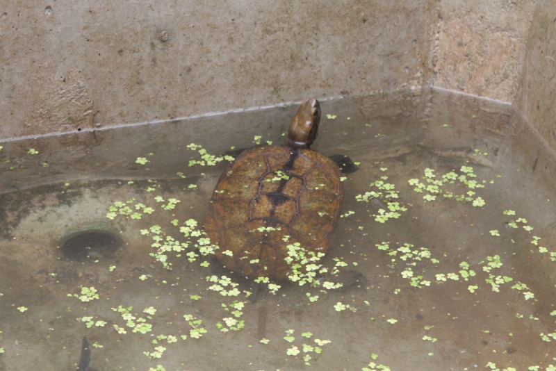 写真の後ろのほうにカメが居ます。