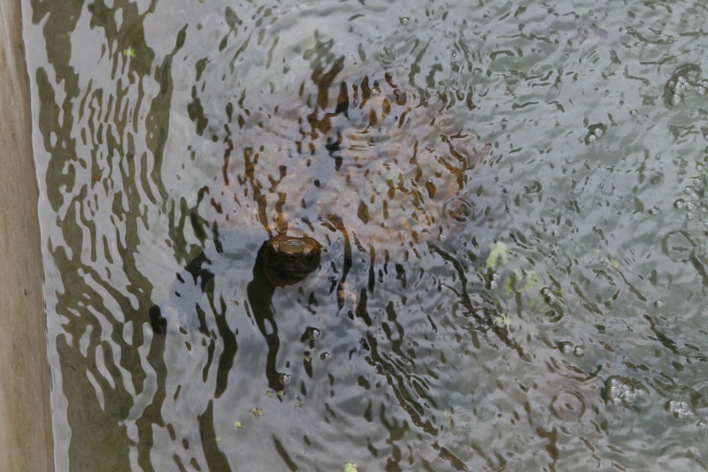 手前のほうにやってきました。注水中なので水面が波立ってます。