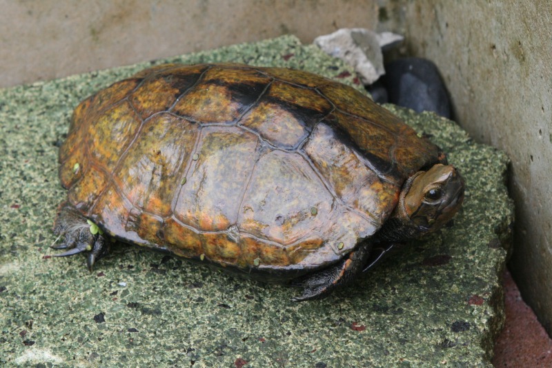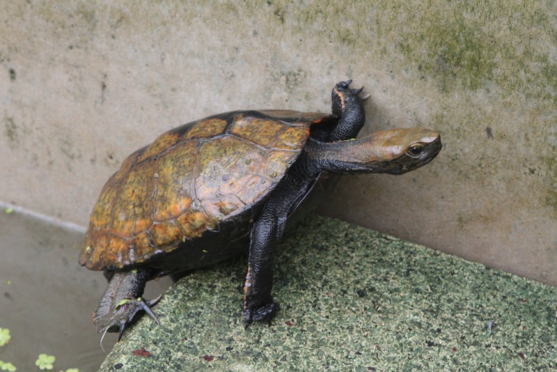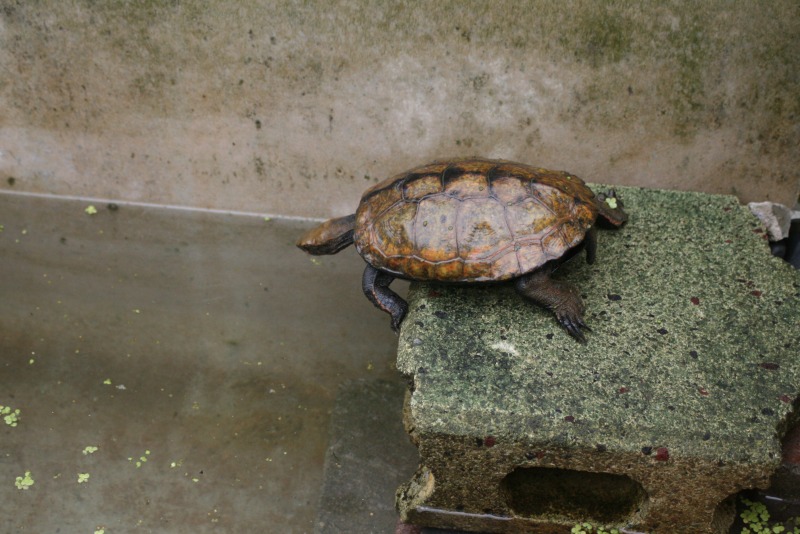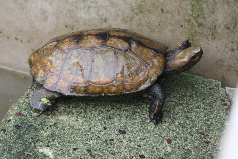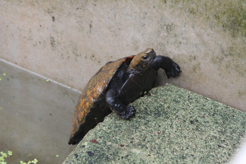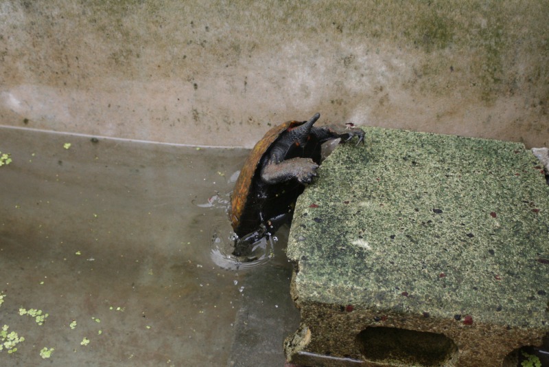 カメが甲羅干しのために作った場所へ登ろうとしてます。あともう少し!