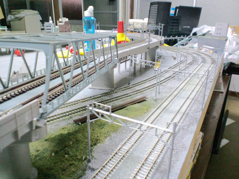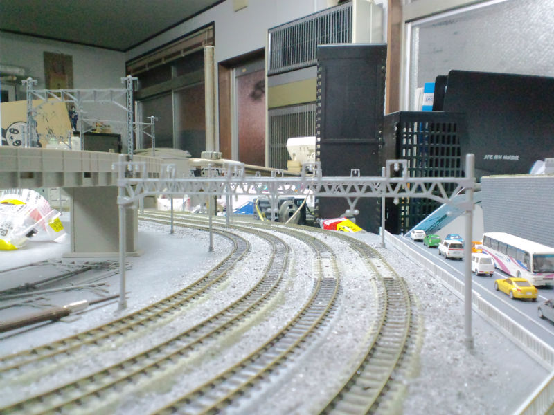 この地点もカラーパウダーを撒く面積が増えたりレールを線路際に置いたりしてちょっと雰囲気が変わりました。