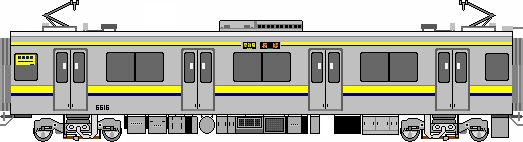 いままでの4桁形式の決定版でオールマイティーに使用できる車両として2006年に3連14本、7連12本が投入されました。車内イメージは大体321系+205系2WAYシート車です。また、この車両も増発用に5000系と同様の改良を施された車両が2次車として3連4本、7連4本が2006年末~2007年2月に増備されました。そして2007年5月に2次車の一部マイナーチェンジ車(前面スカートの大型化、少々の高運転台化など)が現在進行形で投入されています。最終的に3連12本、7連7本が投入される見込みです。