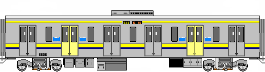 不定期ながら最近回数が多くなっている架空鉄道車両紹介です。この車両は長堀側7両目に連結される6ドアサハのサハ6600です。一応サハですが地下鉄区間では室内灯などのちらつき防止のための大型蓄電池がある関係で集電も行います。サハについては以上です。49c3461epng