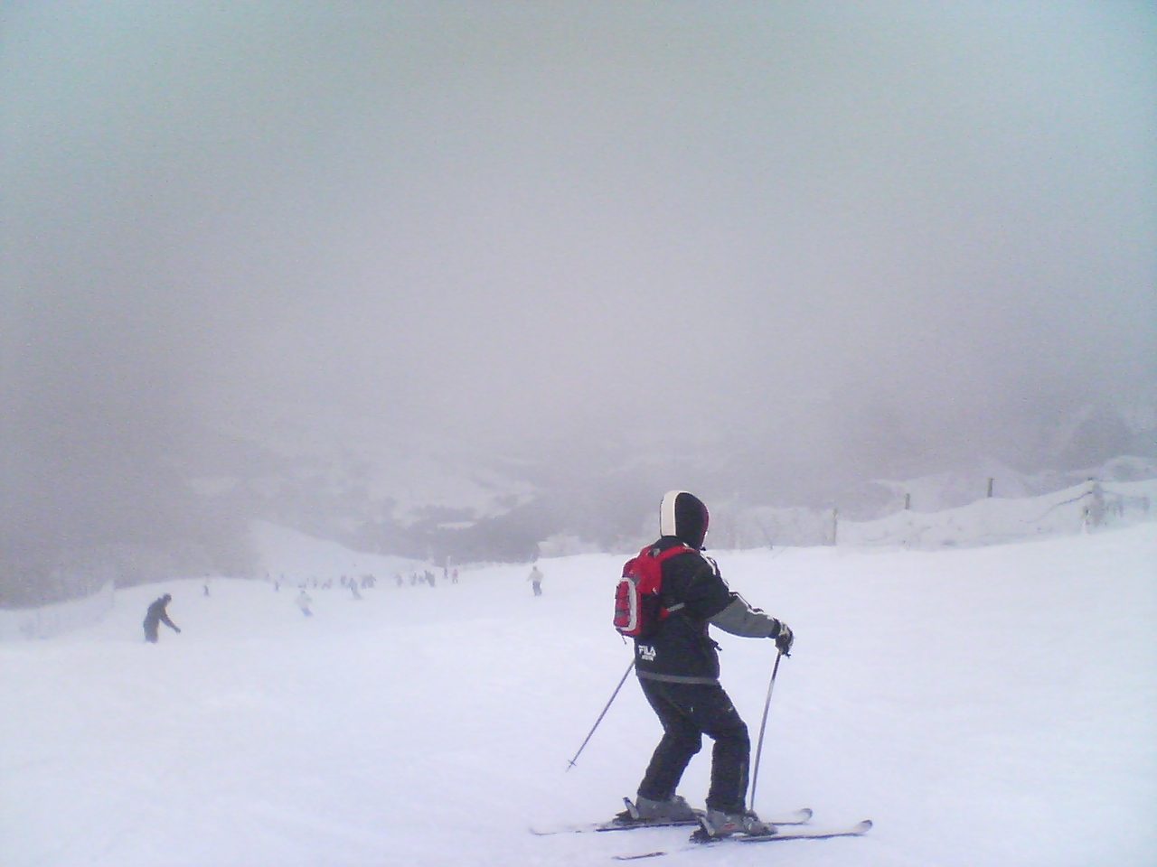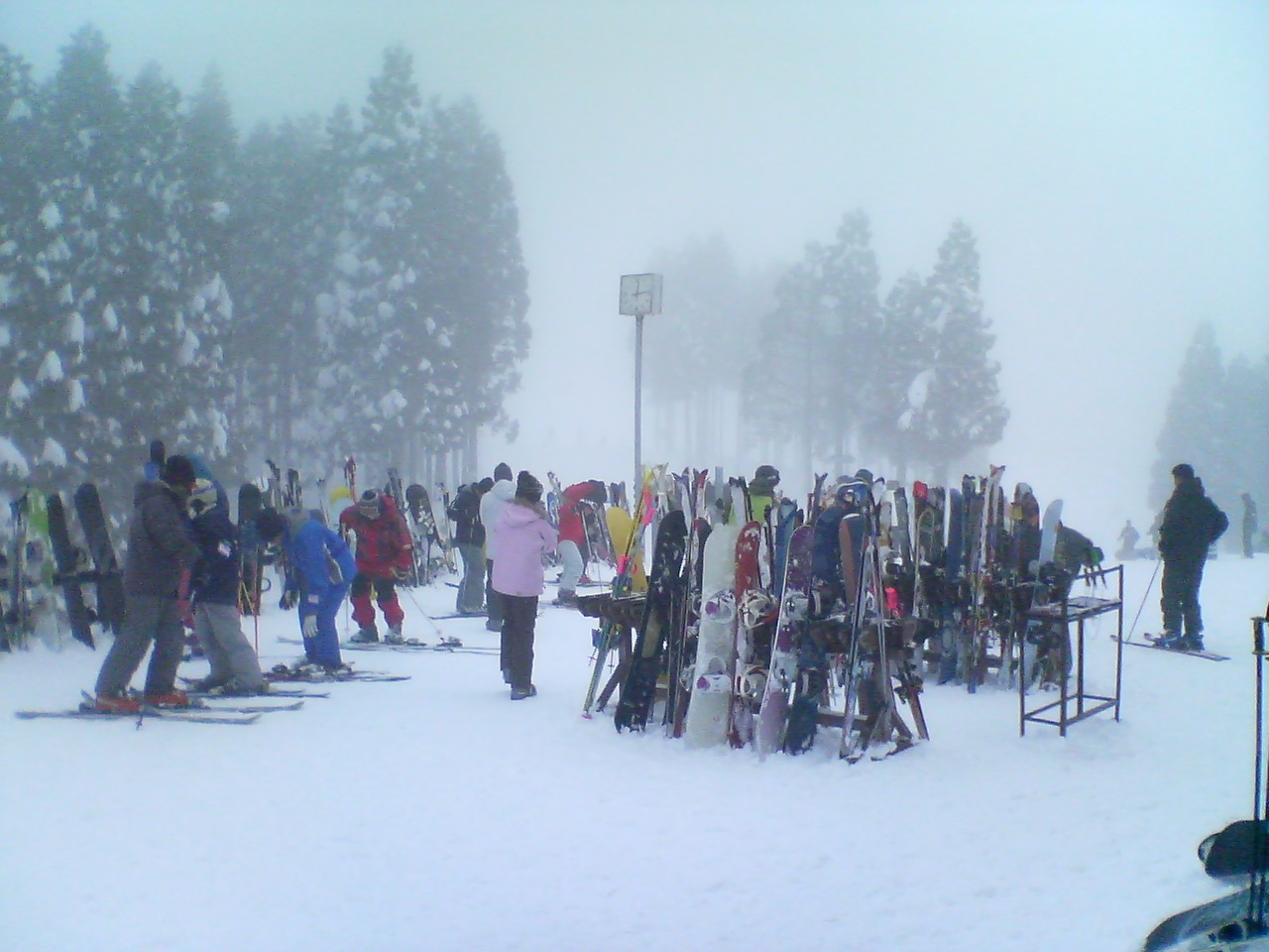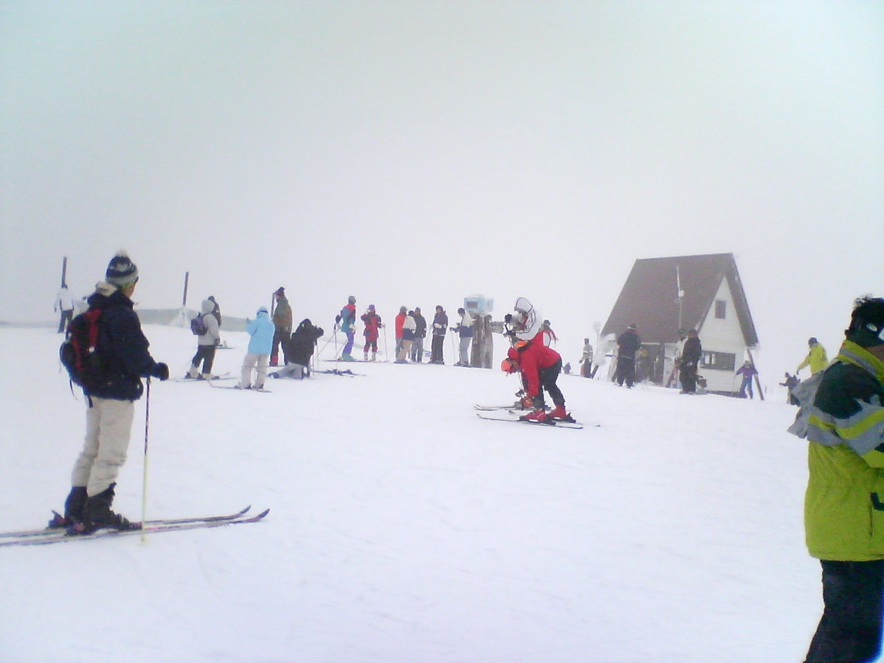 頂上から滑走前に撮った一枚。天候不順ですねぇ…。