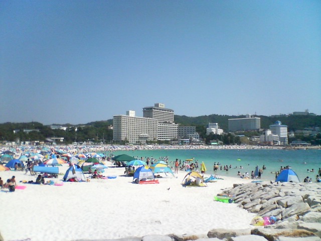 写真は、今日撮影した近畿有数の海水浴場、「白良浜」です。白い砂がきれいです。(海水浴には行ってません。)