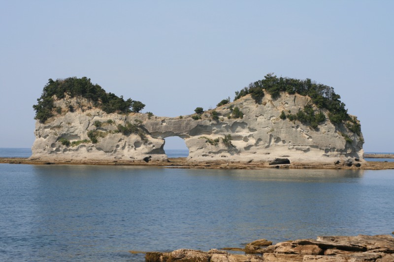 白浜町の臨海地区にある「円月島」という島です。