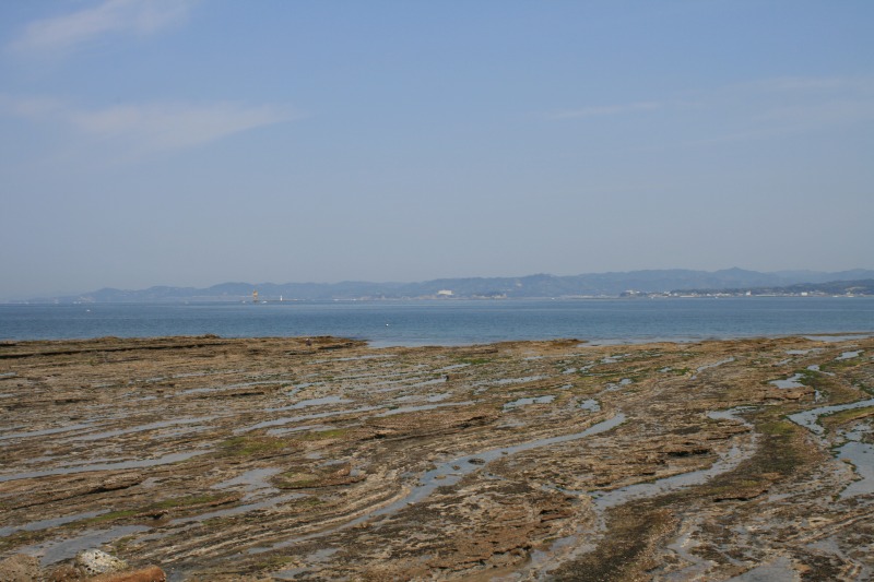 手前には広大な磯が広がります。