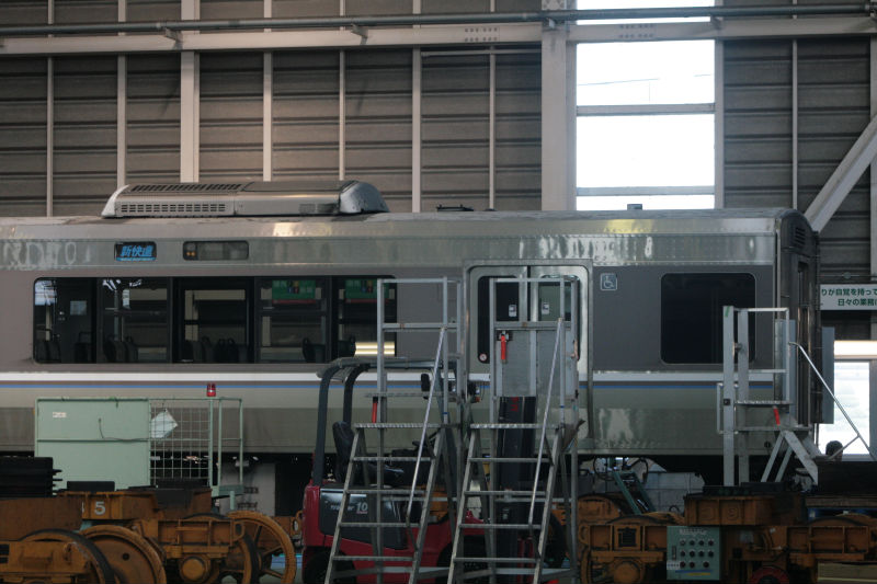 今年1月の事故以来長期入院中のW11編成のクハ222-2002。トワイライトの奥に居ました。