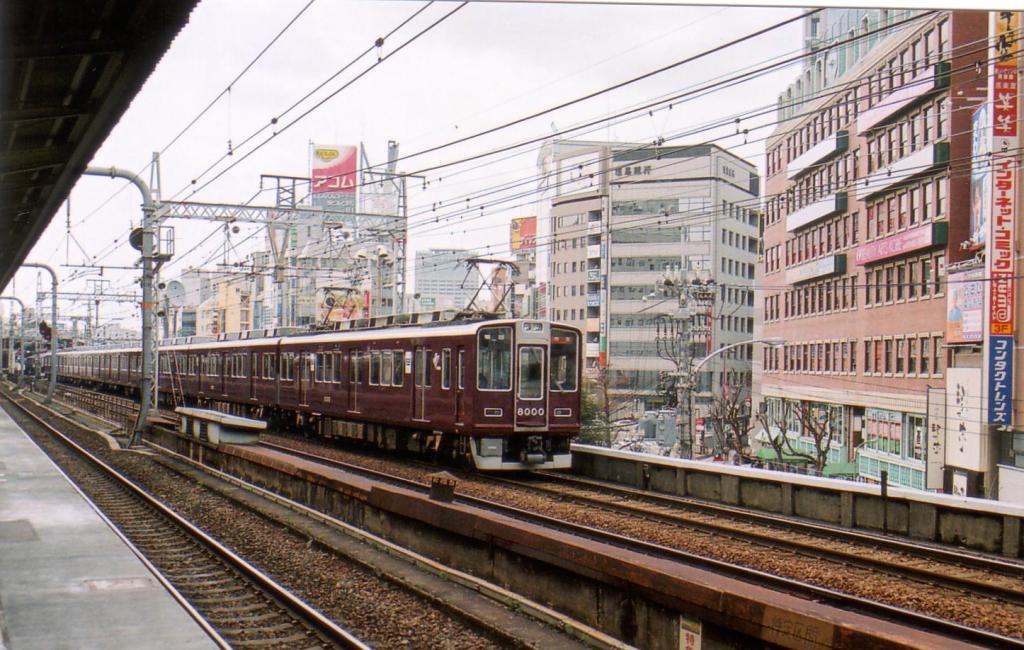 阪急「8000」系のトップナンバー、「8000」Fの写真です。前面真ん中の悪い癖が出てますねぇ・・・。