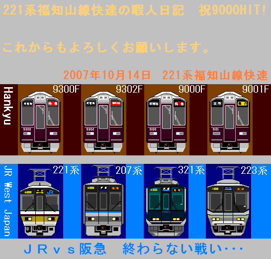 昨日、当ブログ「221系福知山線快速の暇人日記」は、9000HITを突破しました。