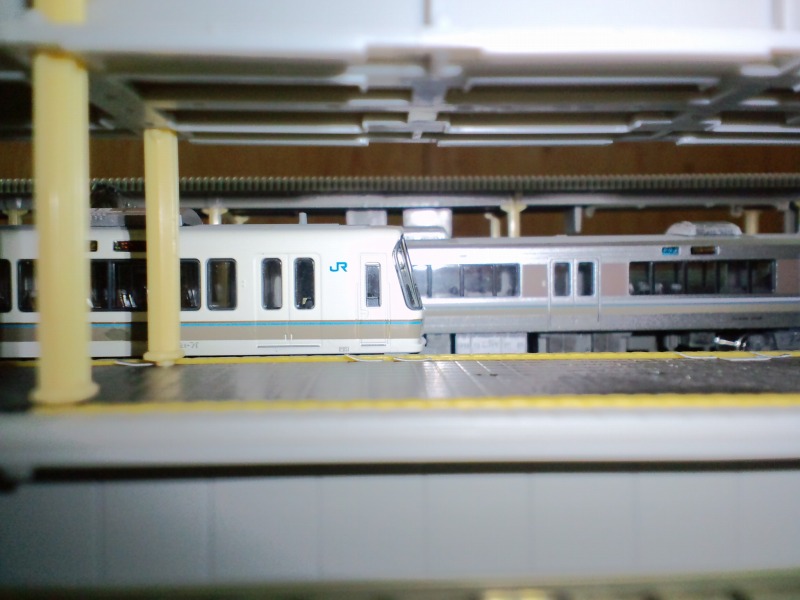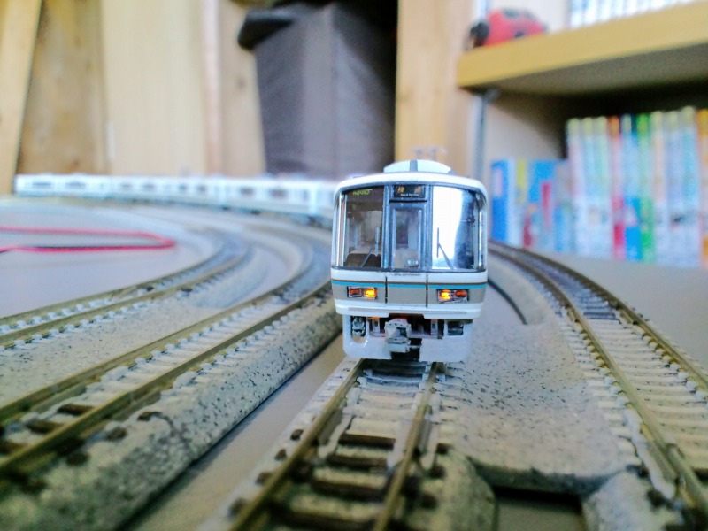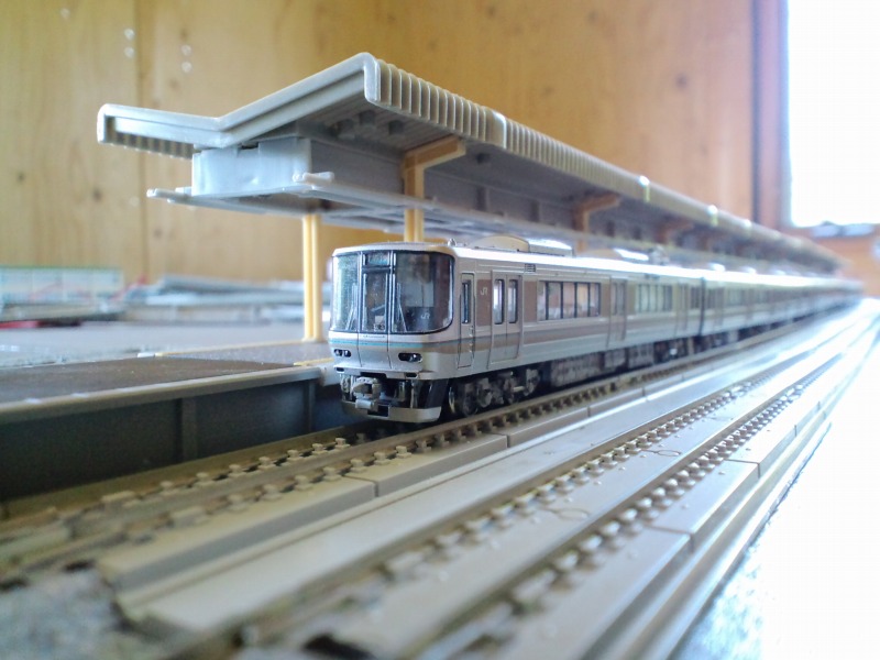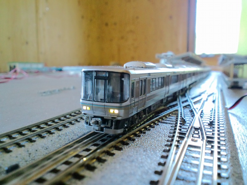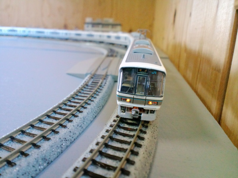 複々線風カーブもスペースをちょっと削りましたが残ってますよ!221系快速の後打ち。