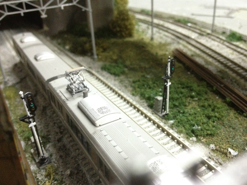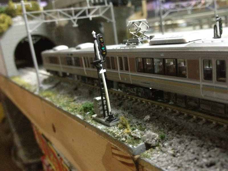 この出発信号機、最初は2番線用もあったんですが塗料を乾かしているときにストーブが近すぎたようで融けてパーになりましたorz