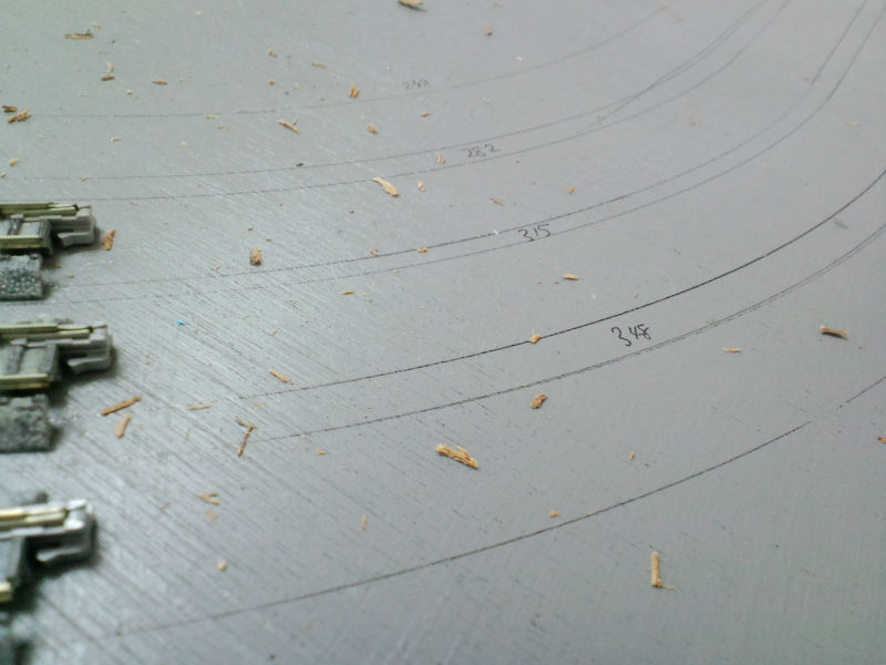 今まで線路を敷いていた部分をマジックでなぞって線路配置を残してから更地に。