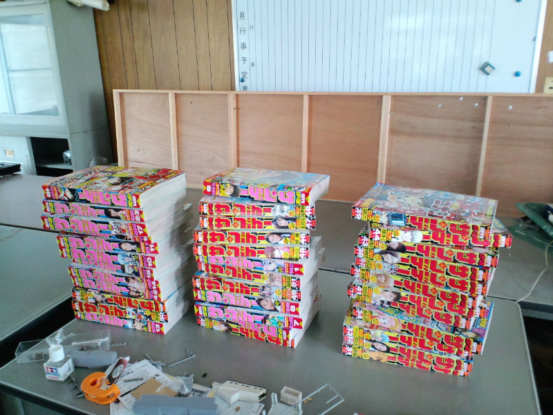 全部で36冊(4箇所×3列で3段)使ってレイアウトをかさ上げしました。