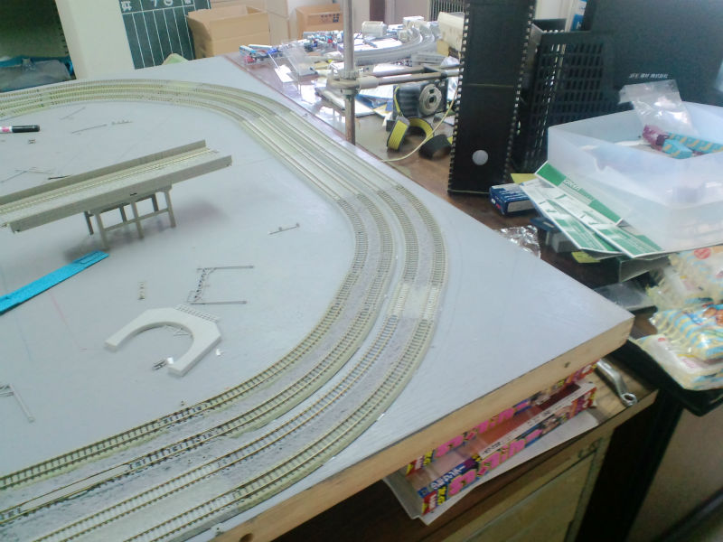 そして線路も引きなおして次はレールの固定です。