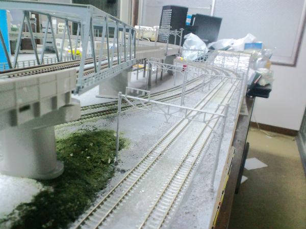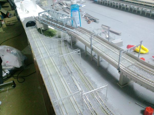 この区間は6線の線路が一同に見られる区間なのでこのレイアウトの中でもかなり気に入ってる区間です。