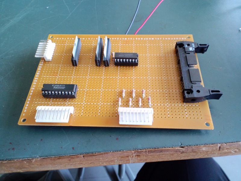 これを右のコネクタから8255ボード、8255ボードからポケットコンピュータにつないで制御します。