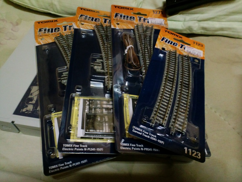 昨日の間に線路を仕入れ。TOMIXの電動ポイント3つとそれに対応するC541-15です。