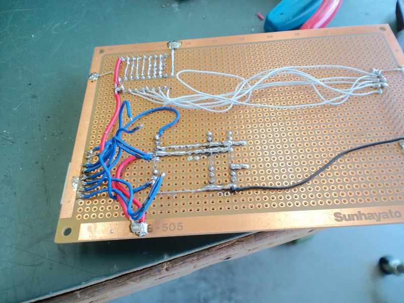 ようやく一通り完成した制御基盤。結線はこうなってます。