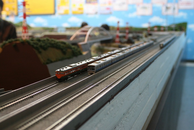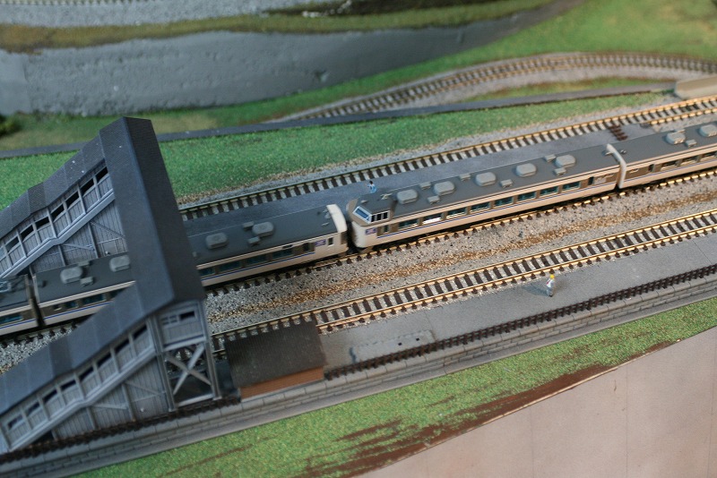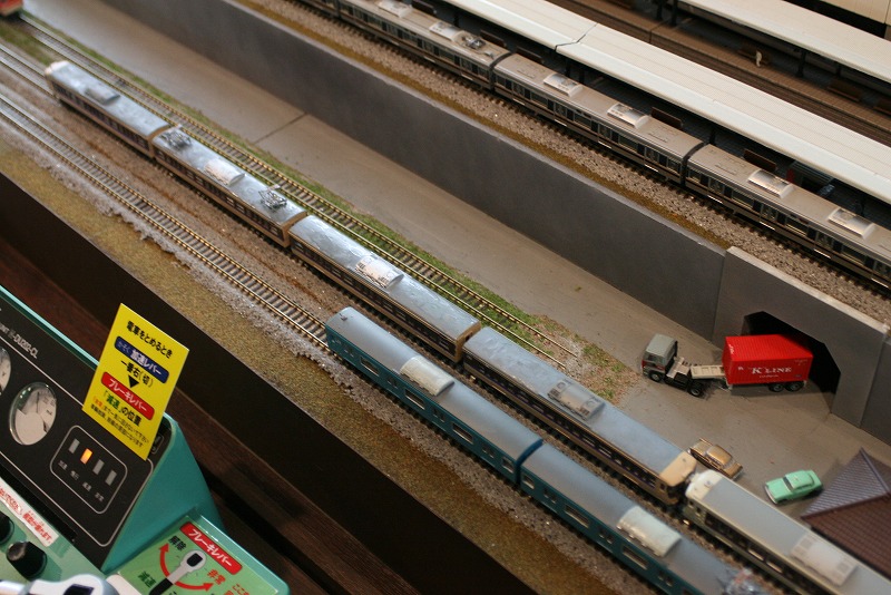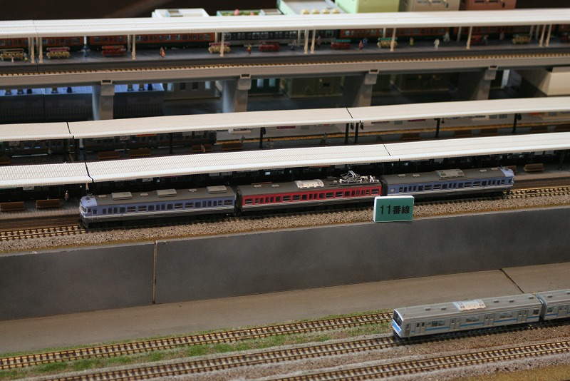 113系混成編成。湘南色の車両は青い広告シールまで貼ってあります。うちも223-1000に貼ろうかな…。