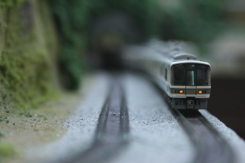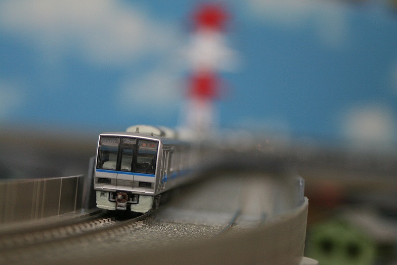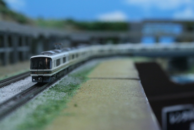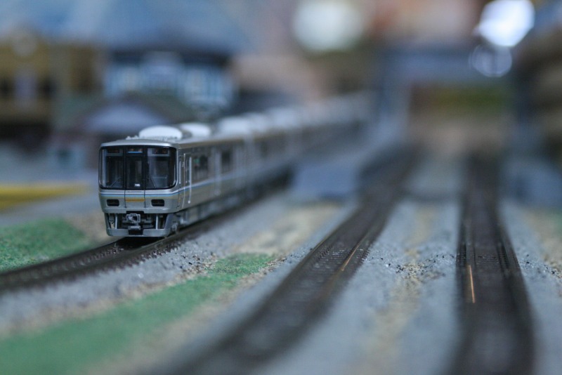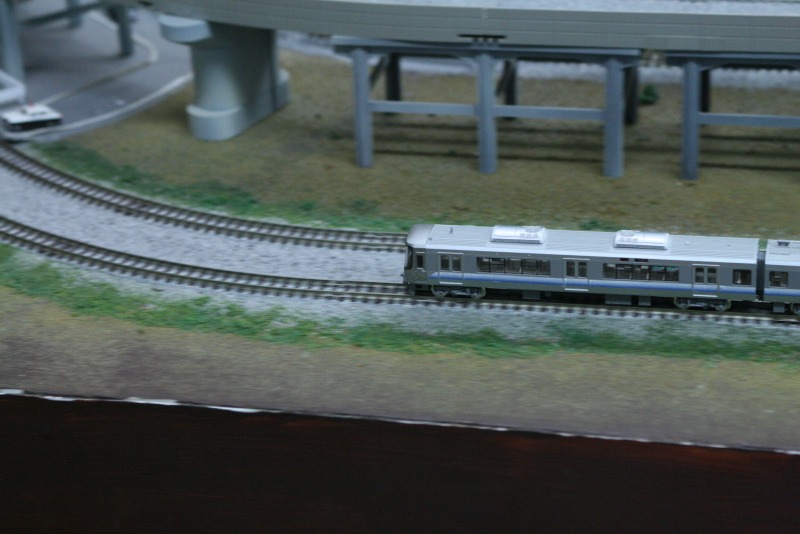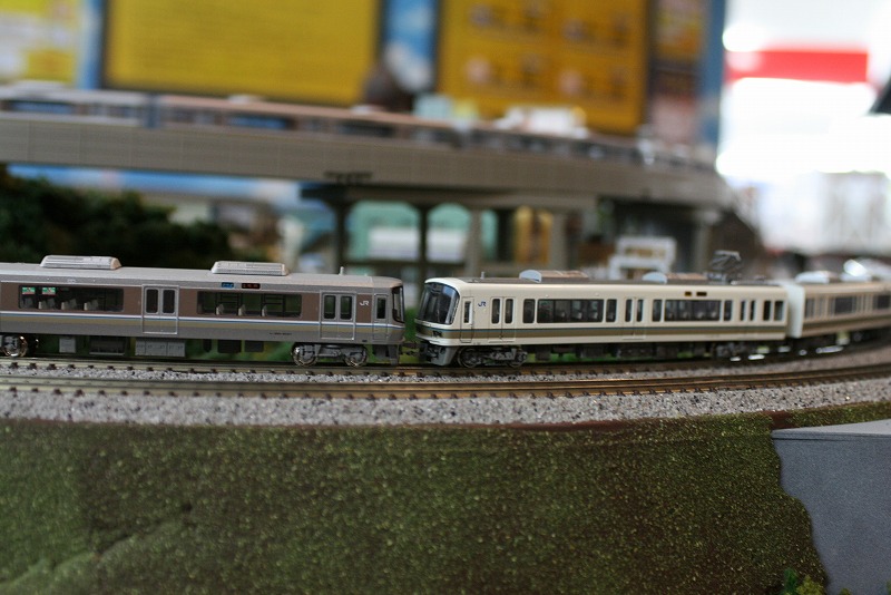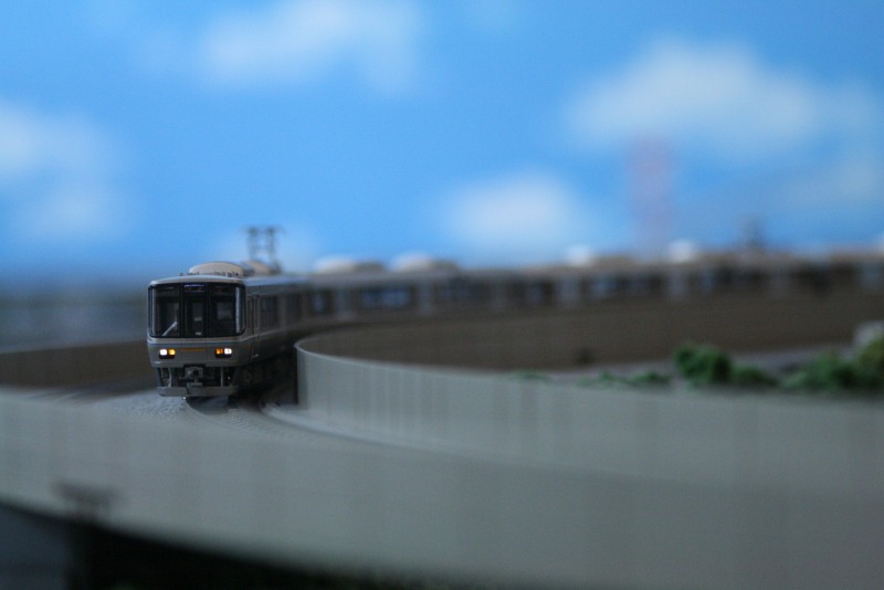 223系2000番台を流し。模型は流し撮り難しいですね。