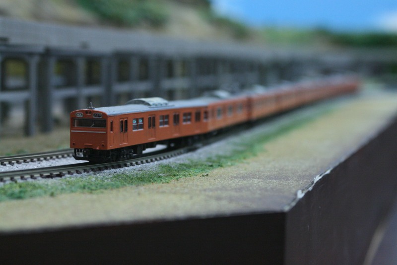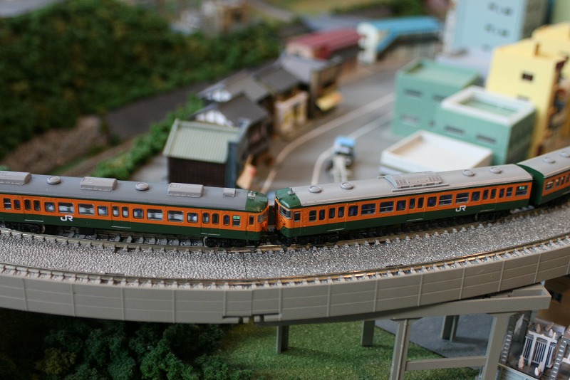 EF66さんより113系をお借りして、京都総合運転所所属車をイメージしたN30+N40湘南の8両編成です。