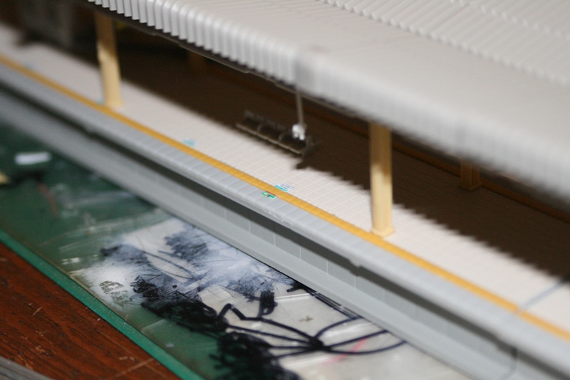 非常に見にくいですが時計を貼り付けるパーツに番線表示をつけました。