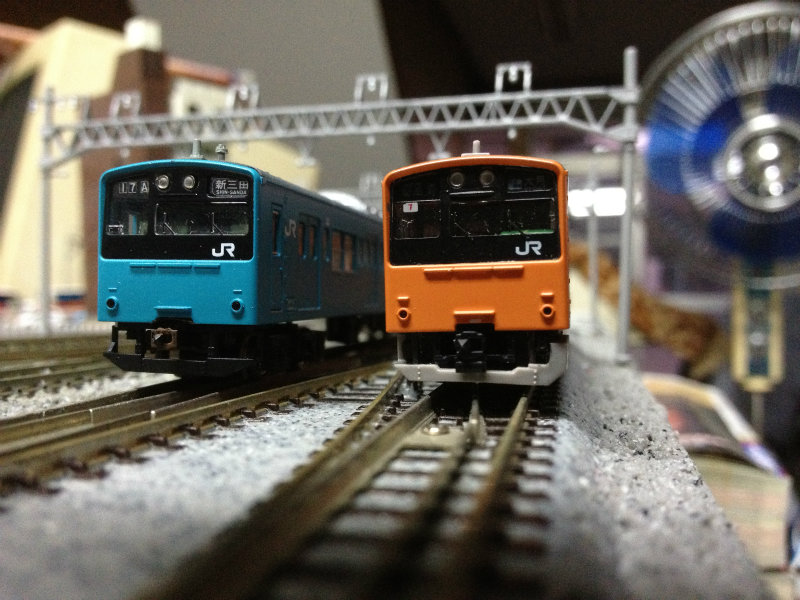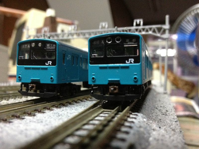 トミーテックの201系と比較。これでようやくいい勝負といった感じじゃないでしょうか。