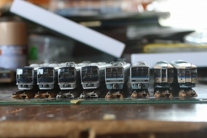 今机の上にある車両を並べてみました。113系の雑さが目立ちます・・・。