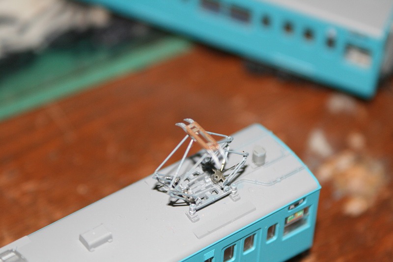 例によってパンタグラフのすり板を銅色に。