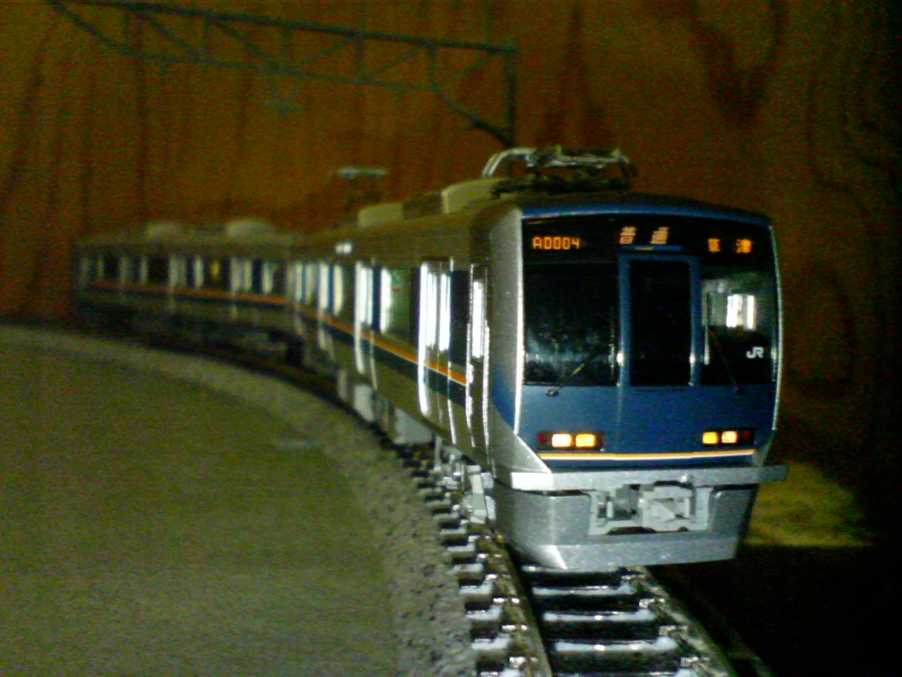 今はカトー321系では表示できない行先で運転するために先頭車を差し替えて使ったり、207系を7連運転するために207系と併結したり柔軟な使い方をされています。