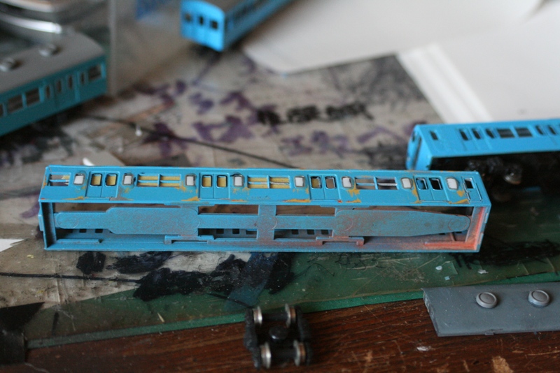この編成は一言で言えば寄せ集め編成です。スカイブルーの色味が違うので何とかしようかなと・・・。