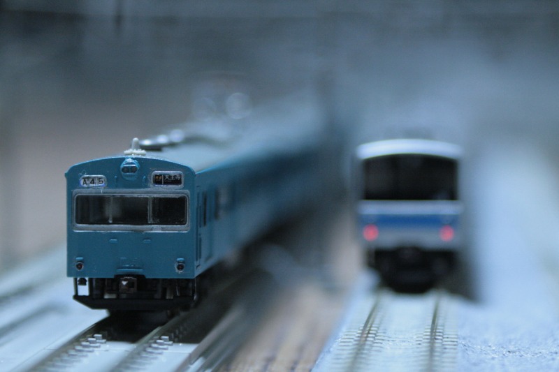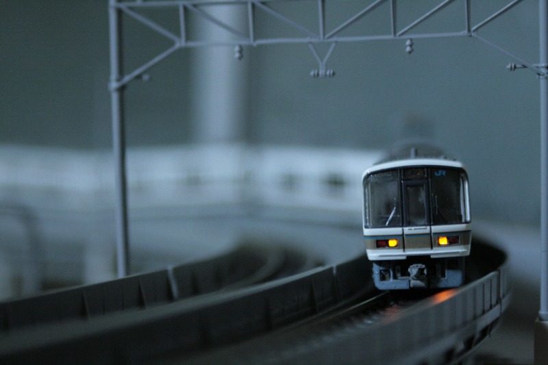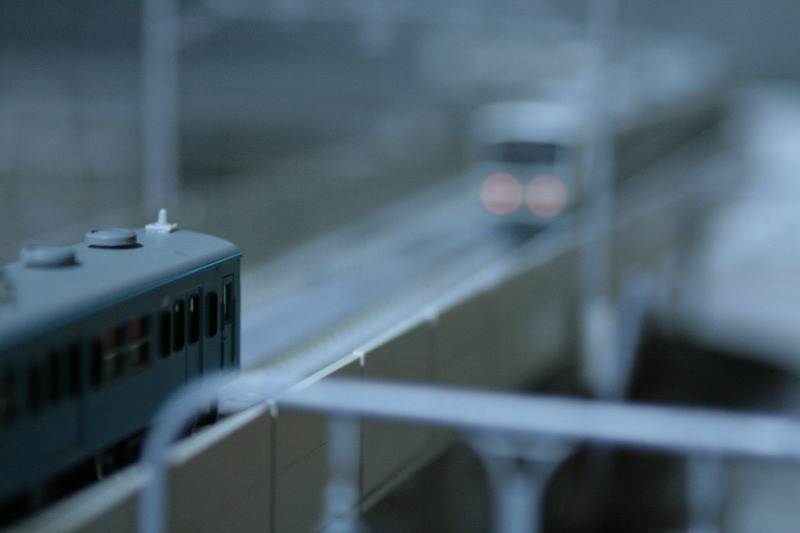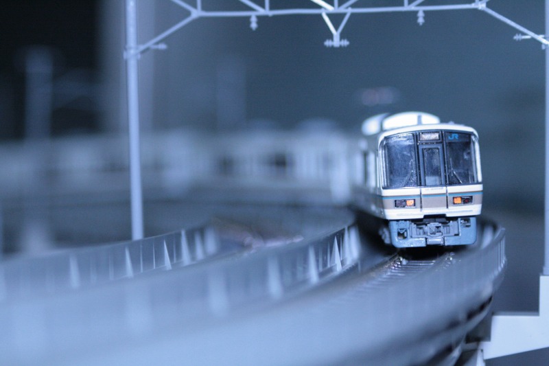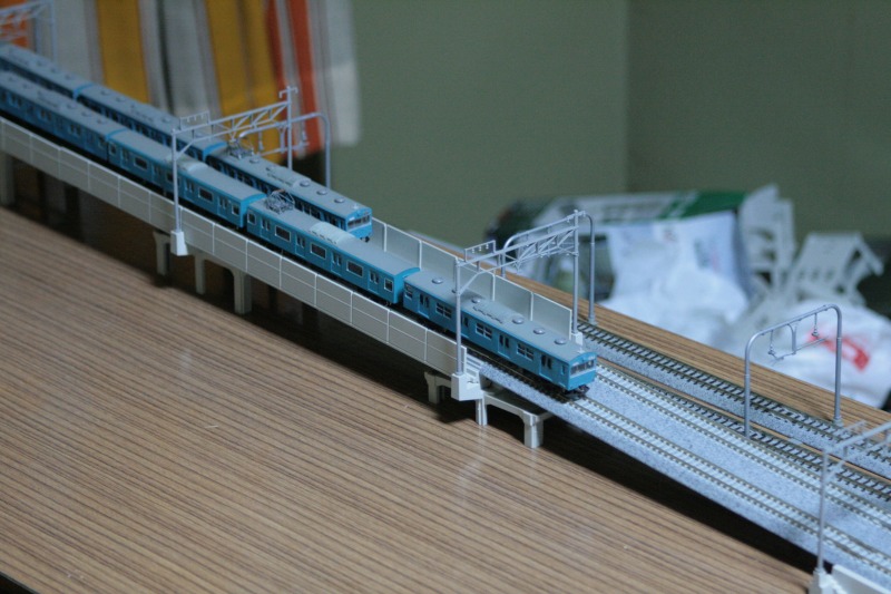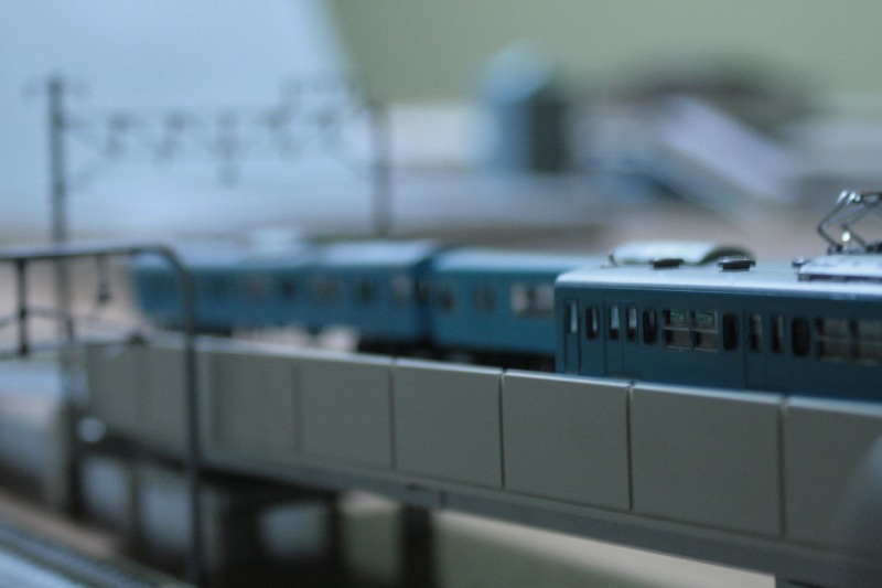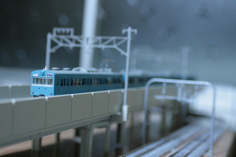 高架線を走る阪和線103系。実車でもありそうな感じですよね。