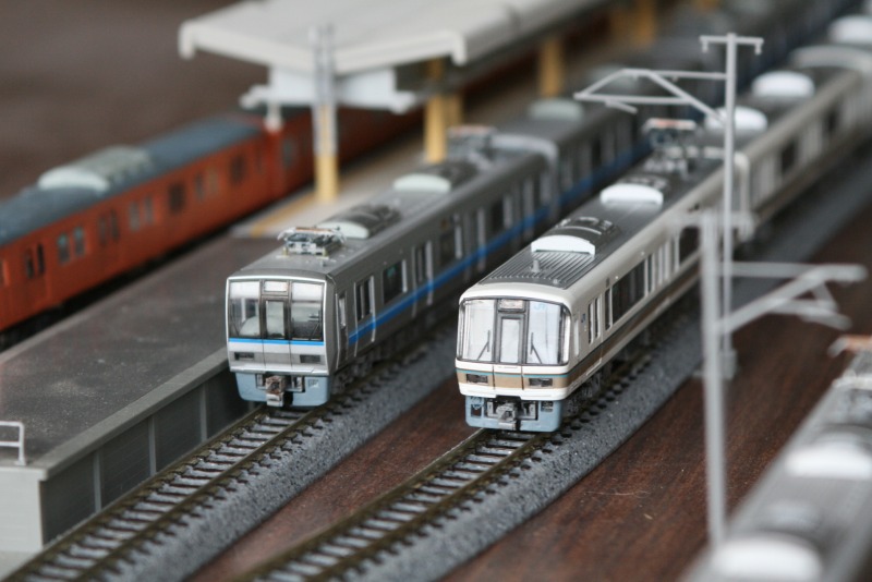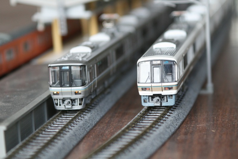 223系と221系。223系のTNカプラーは321系からの流用品で、胴受けが曲がっているタイプです。
