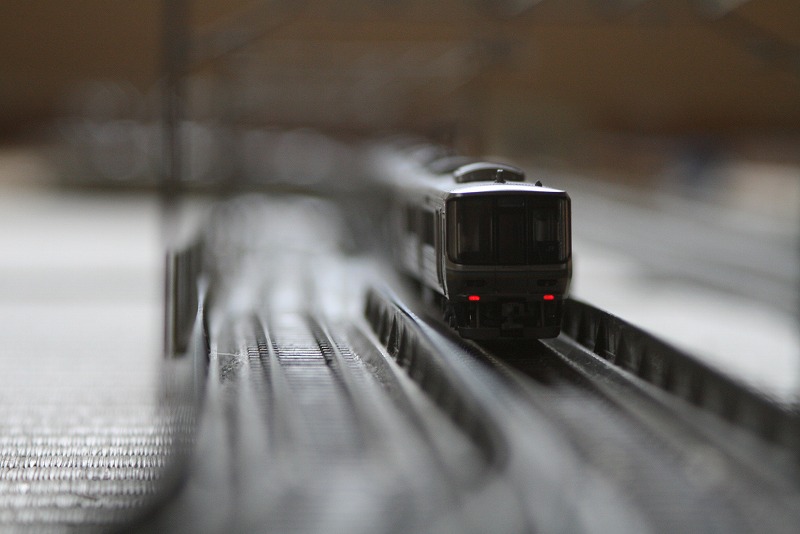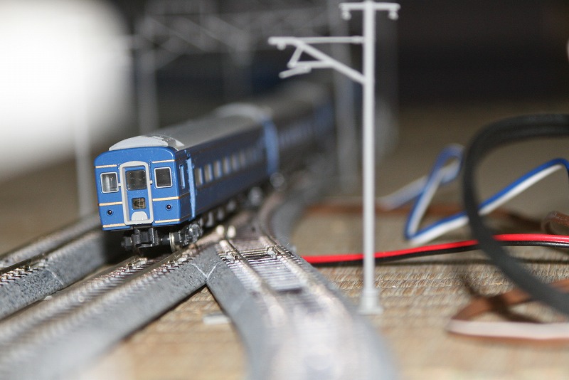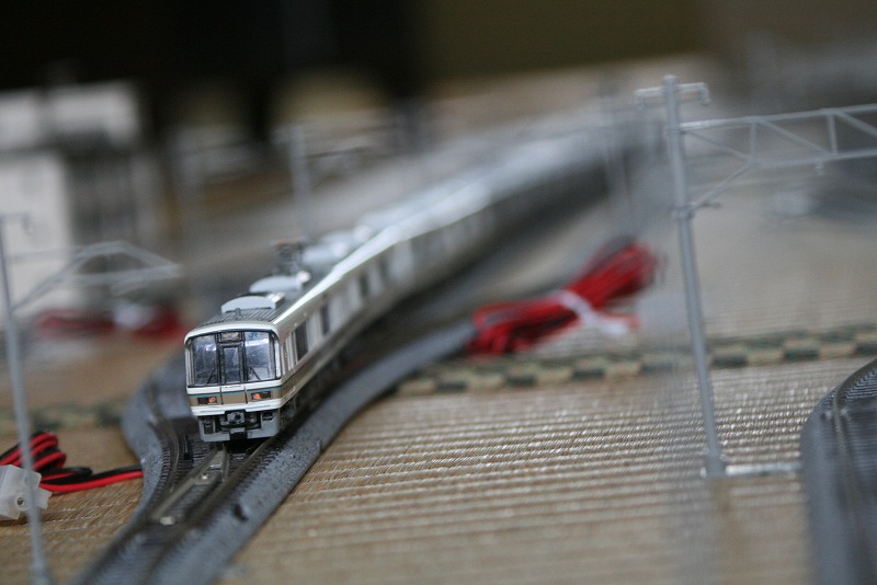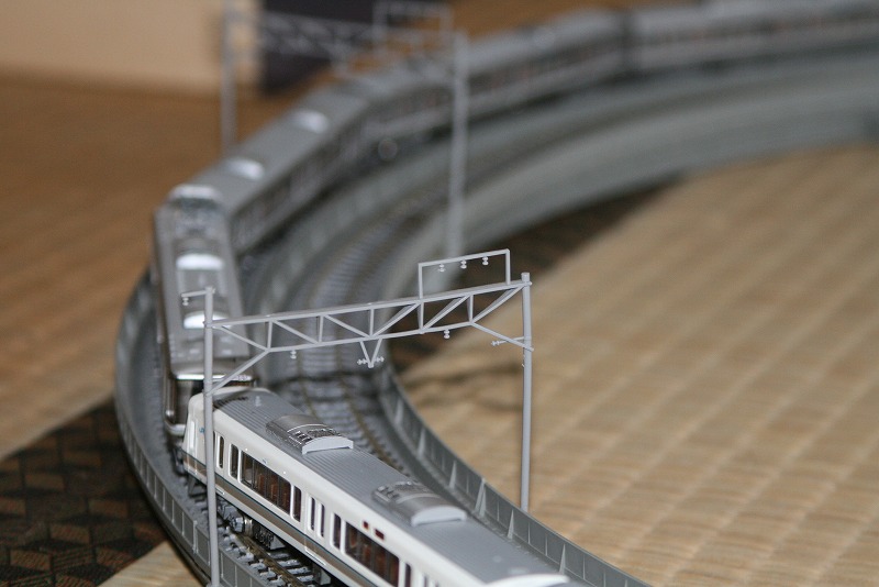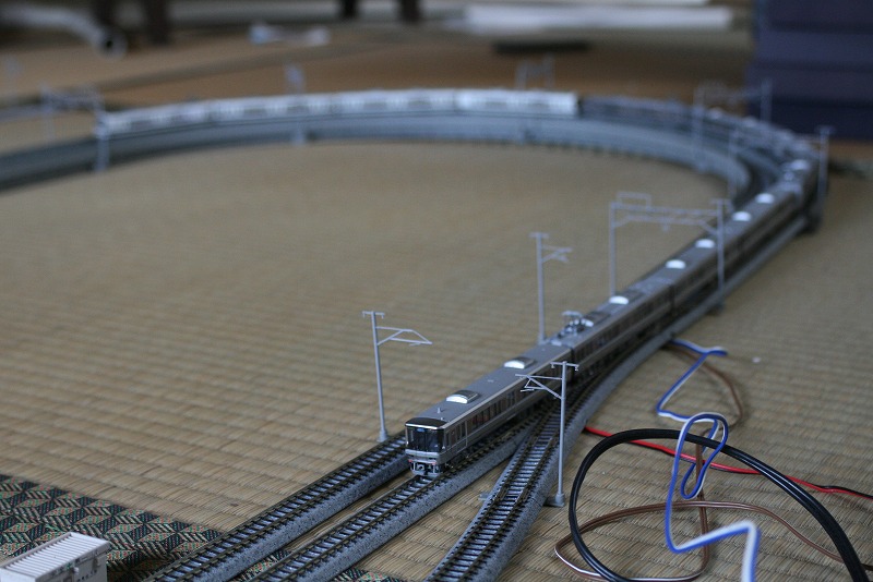 またまたカーブ!ここはカントをつけてます。車体が傾いているのがお分かりでしょうか?